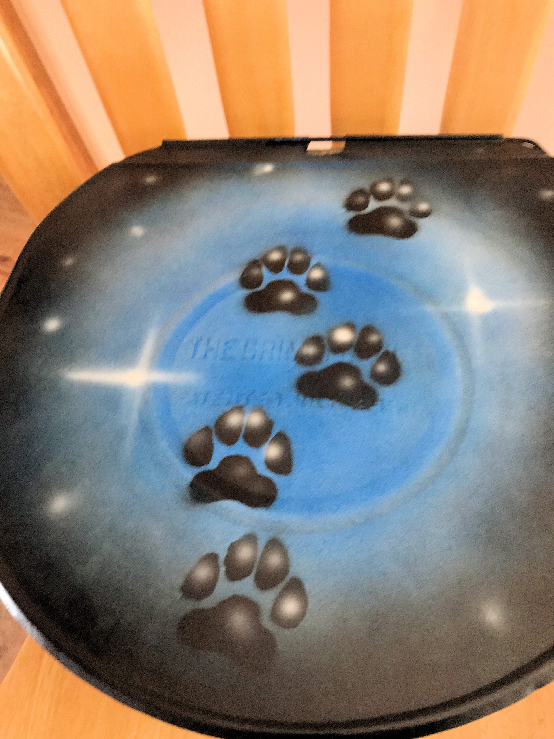 The painted paw prints give it an element of charm—like a tribute to a beloved pet. It’s a lovely way to blend function with art!