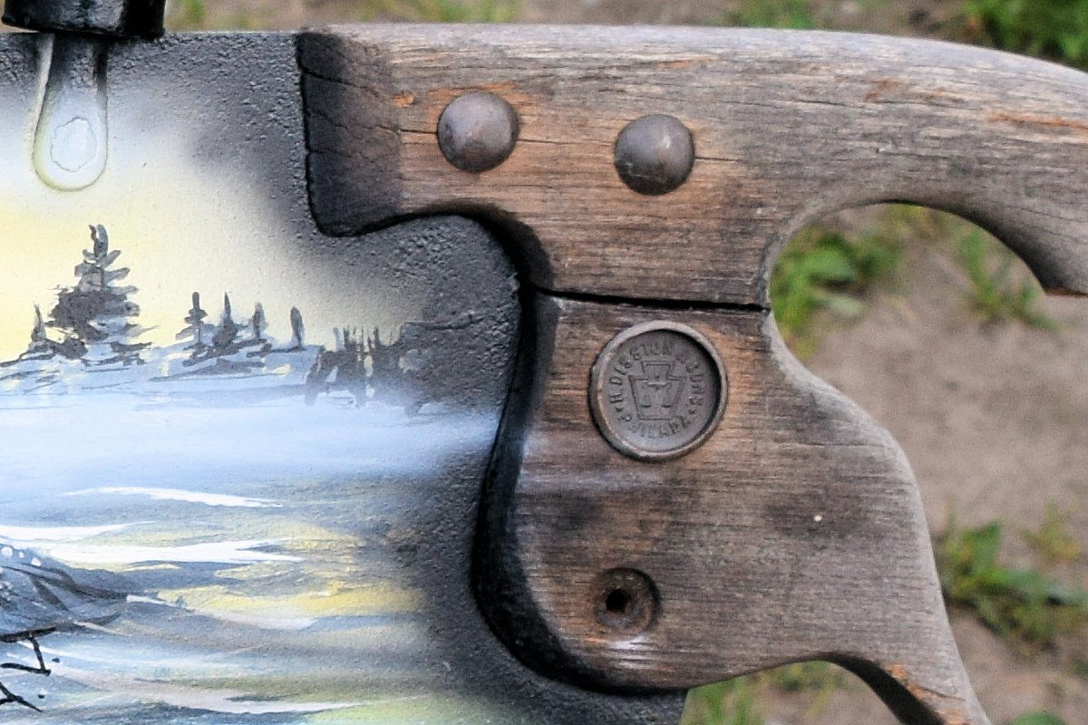 This piece masterfully combines functionality and artistry, transforming a simple saw into a captivating work of art.