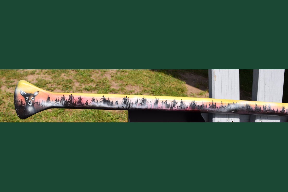 Whitetail Deer Pursuit on Canoe Paddle hand-painted art for sale at adirondackart.org