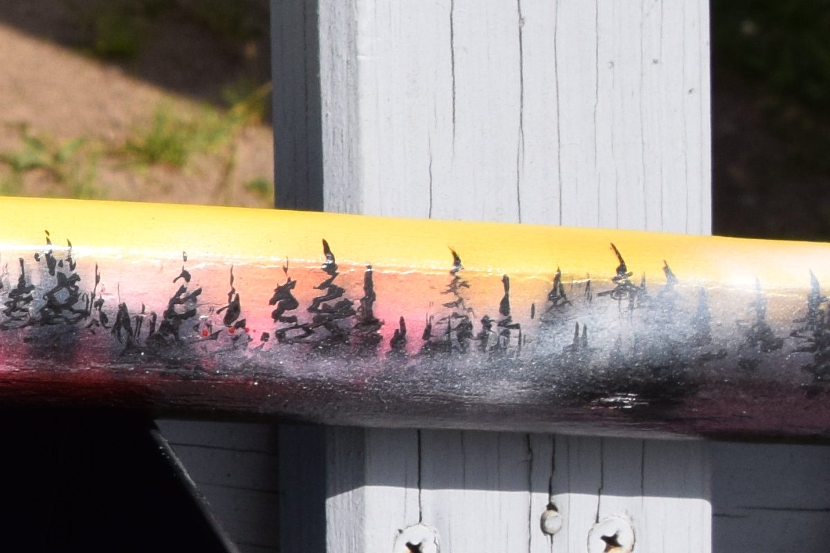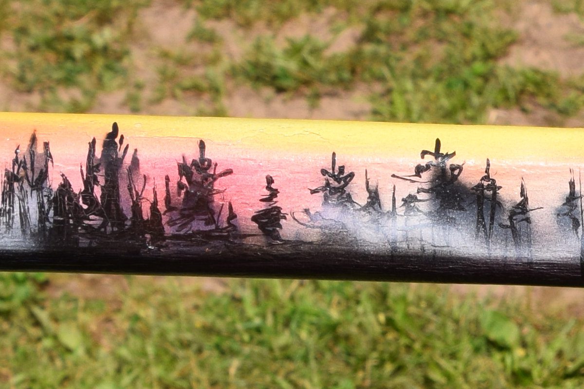This artwork beautifully combines functionality with artistry, transforming an ordinary paddle handle into a visually appealing piece.