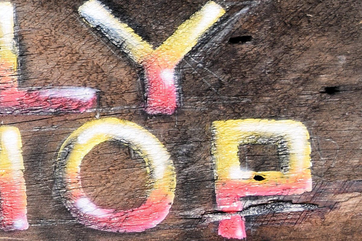 On the right side, the words “FLY SHOP” are painted in capital letters, a chrome reflection of a sunrise.