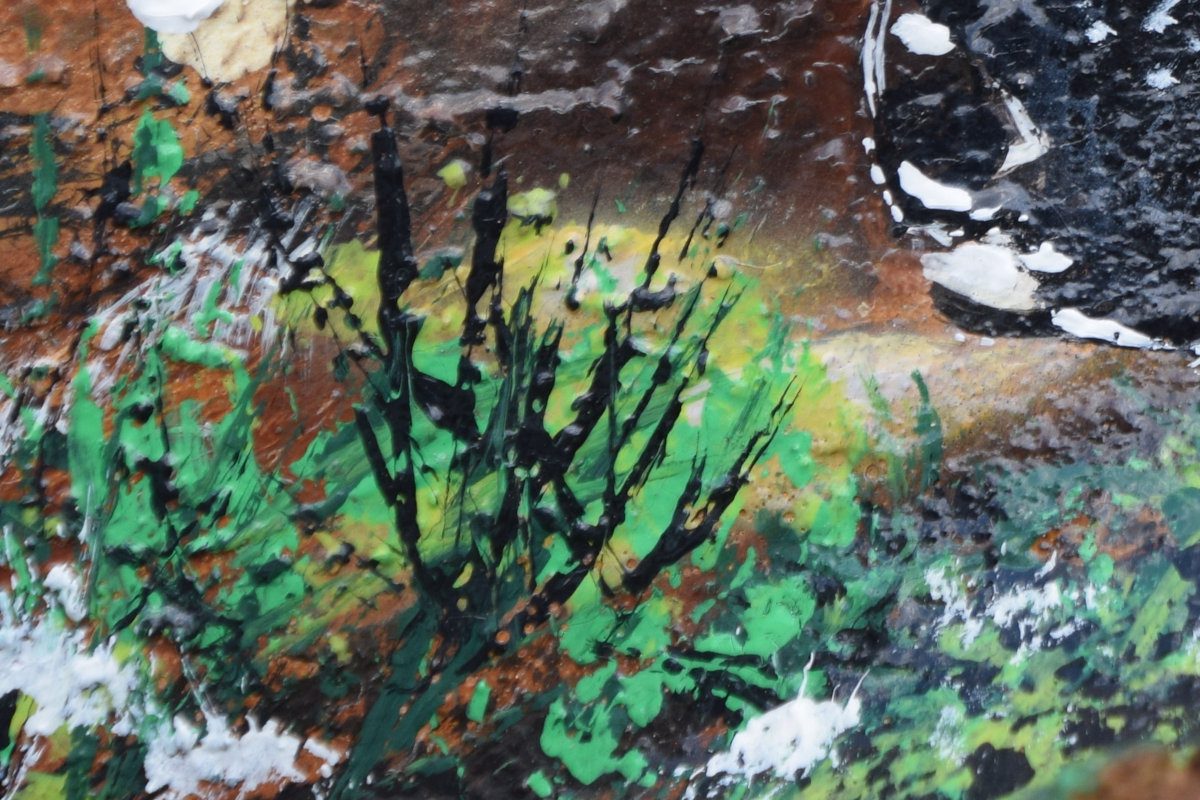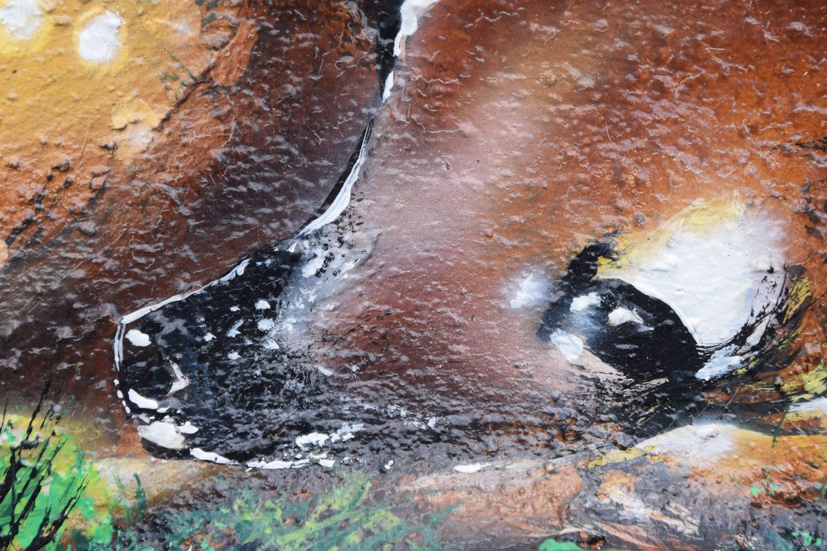 Surrounding the fawn are painted greenery and foliage, blending into the edges of the fungus, creating an illusion of the fawn nestled in its natural habitat.