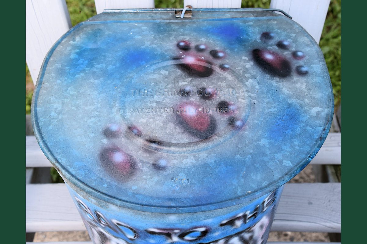 This painting also features several bulldog footprints hand-drawn on the lid.