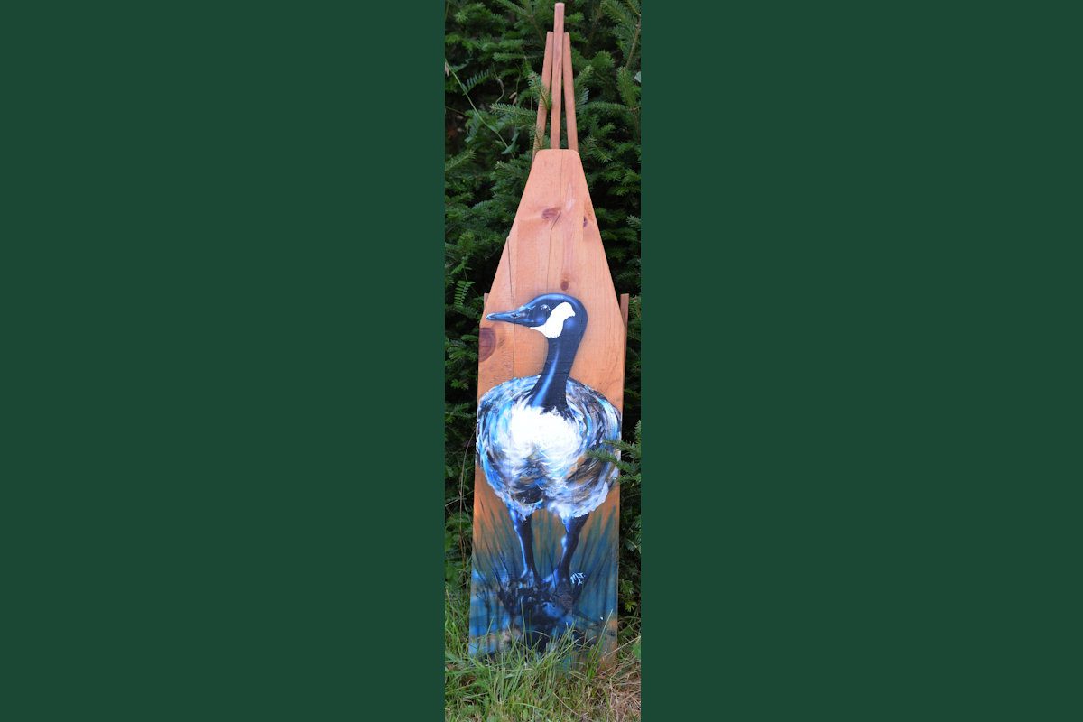 “Canada Goose on Antique Ironing Board” This Adirondack Artwork features a Canada Goose depicted on an antique ironing board.